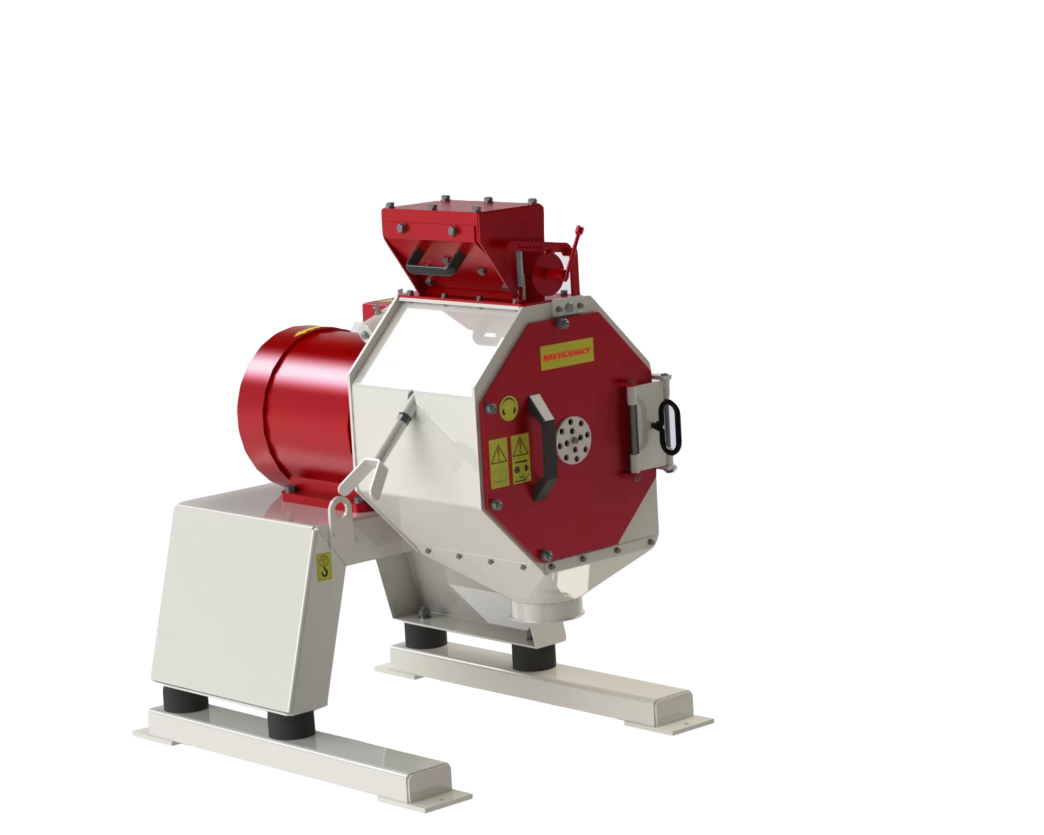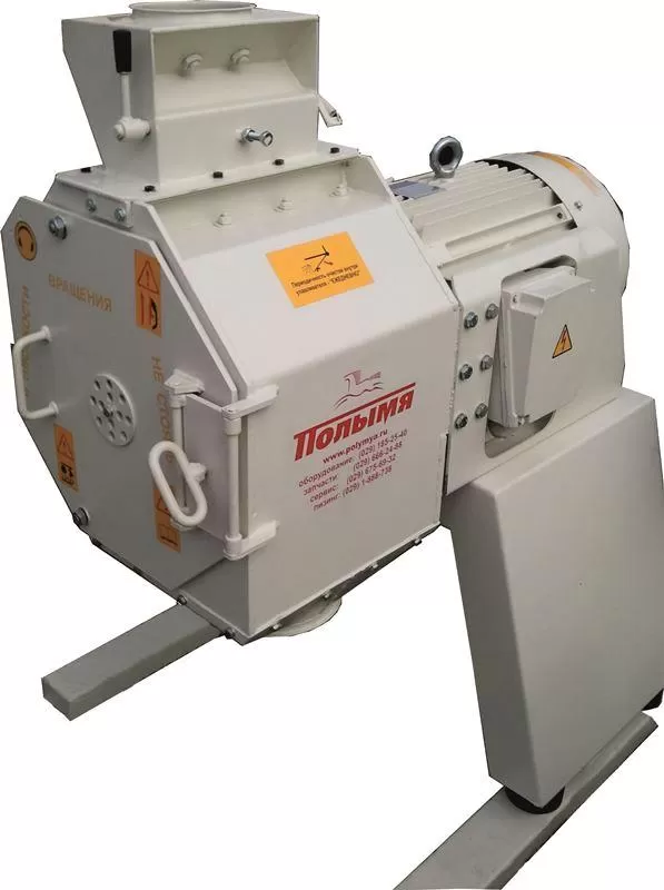 При производстве молотков дробилки используется конструкционная сталь, обладающая повышенной износостойкостью и позволяющая увеличить ресурс использования, сокращая тем самым время на текущий ремонт. Крупность помола зависит от диаметра отверстий в сите установленного в корпусе дробилки. В стандартную комплектацию дробилки входит: молотковая дробилка, опора дробилки, магнитная ловушка, 3 сита с диаметрами отверстий 3, 4 и 5 мм. Дробилки так же могут комплектоваться дополнительными опциями такими как: опора высотой от 250 до 940 мм, приемный лоток для подачи зерна с возможностью загрузки от 50 до 1000 кг, вентилятор с фильтром для сбора пыли, входные и выходные патрубки Ø150-200 мм для подачи зерна и выгрузки готового продукта из дробилки.